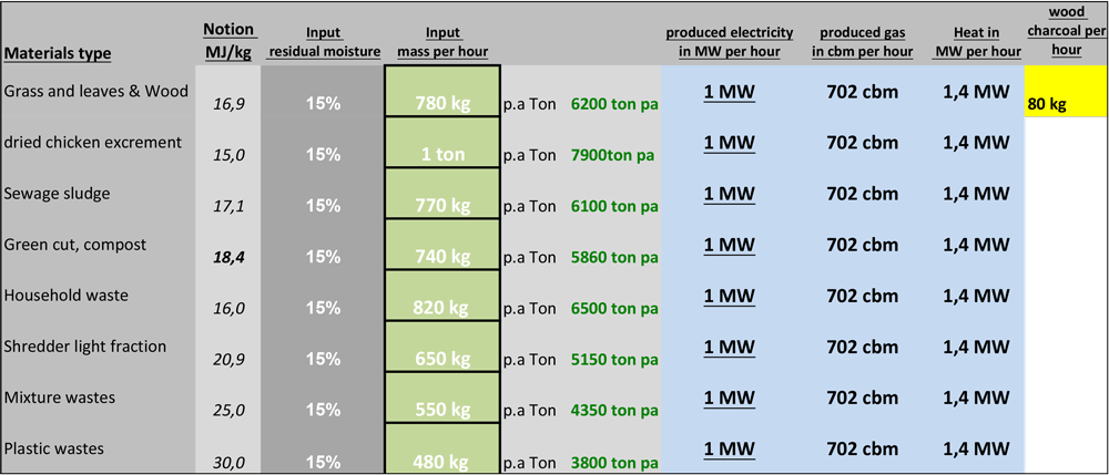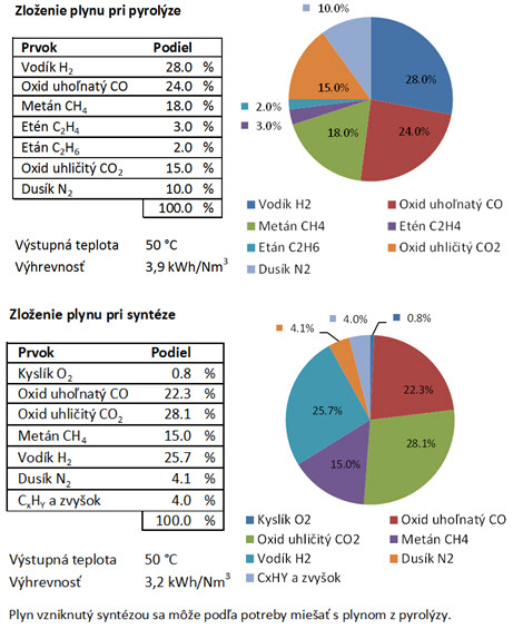 Nezávisle od vstupného materiálu ostáva zloženie plynu skoro identické